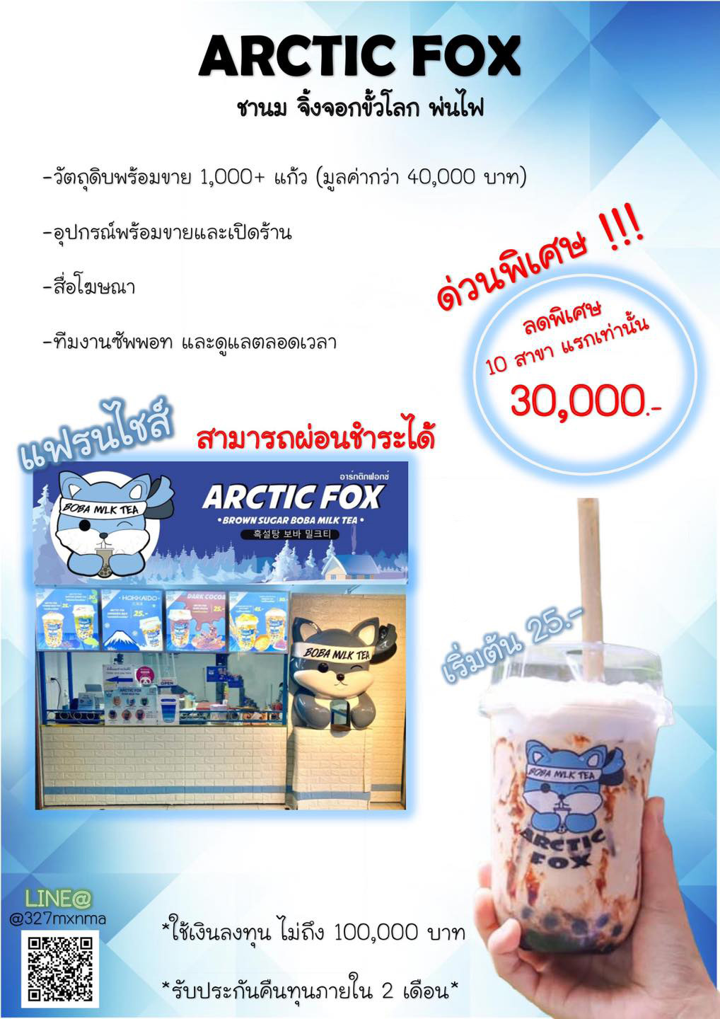 แฟรนไชส์ ลงทุนไม่ถึงแสน สามารถผ่อนชำระได้ Tel.096-409-0656